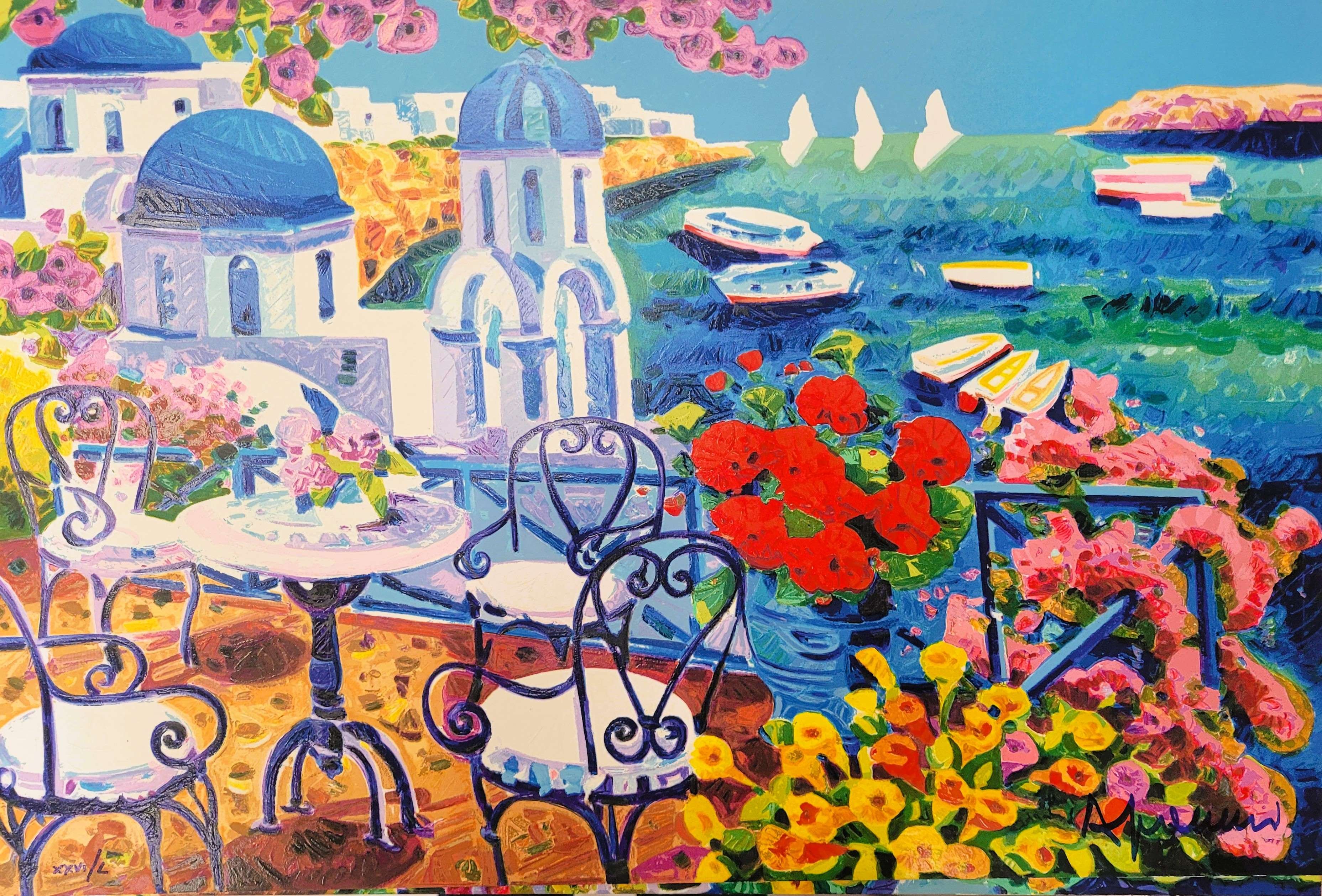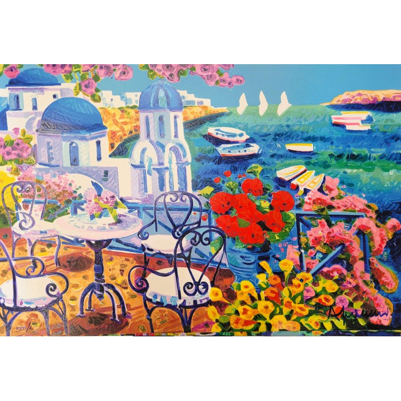Athos Faccincani Serigrafia Tre vele all'orizzonte e luce a Santorini
