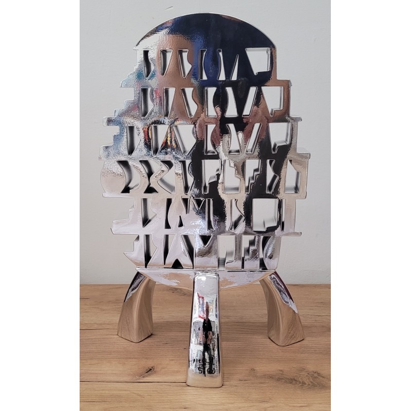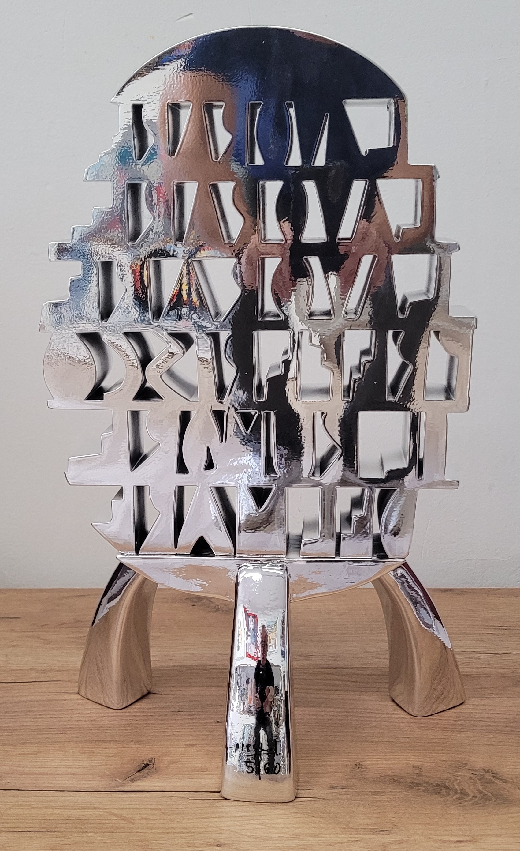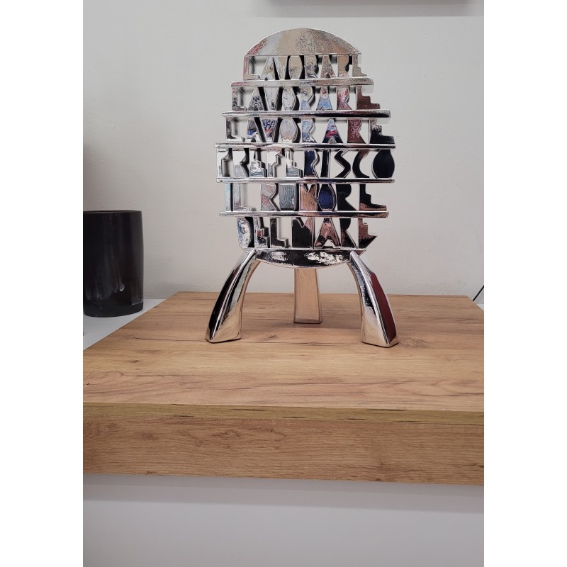 Ugo Nespolo Scultura in resina epossidica verniciata di colore argento Preferisco il rumore del mare