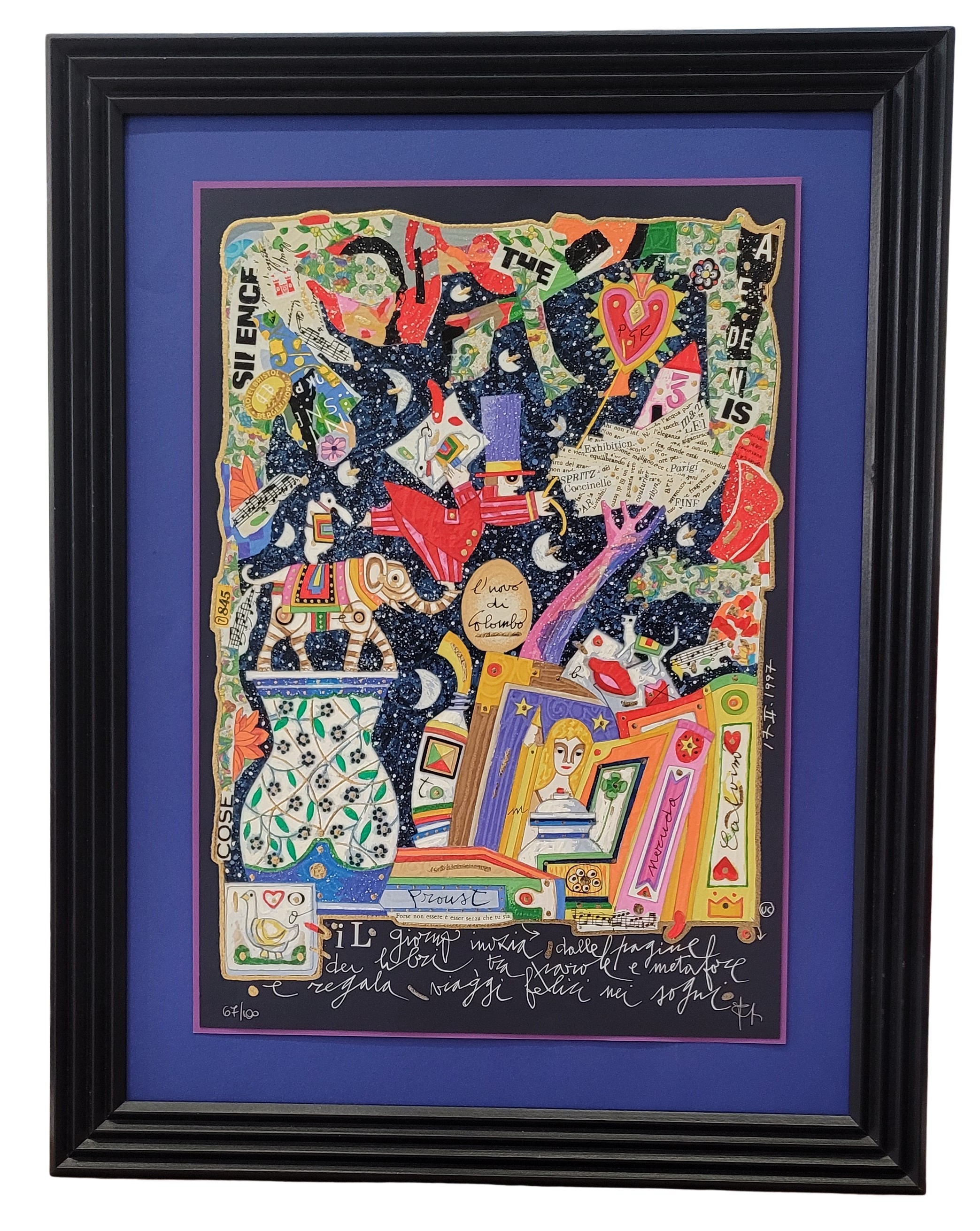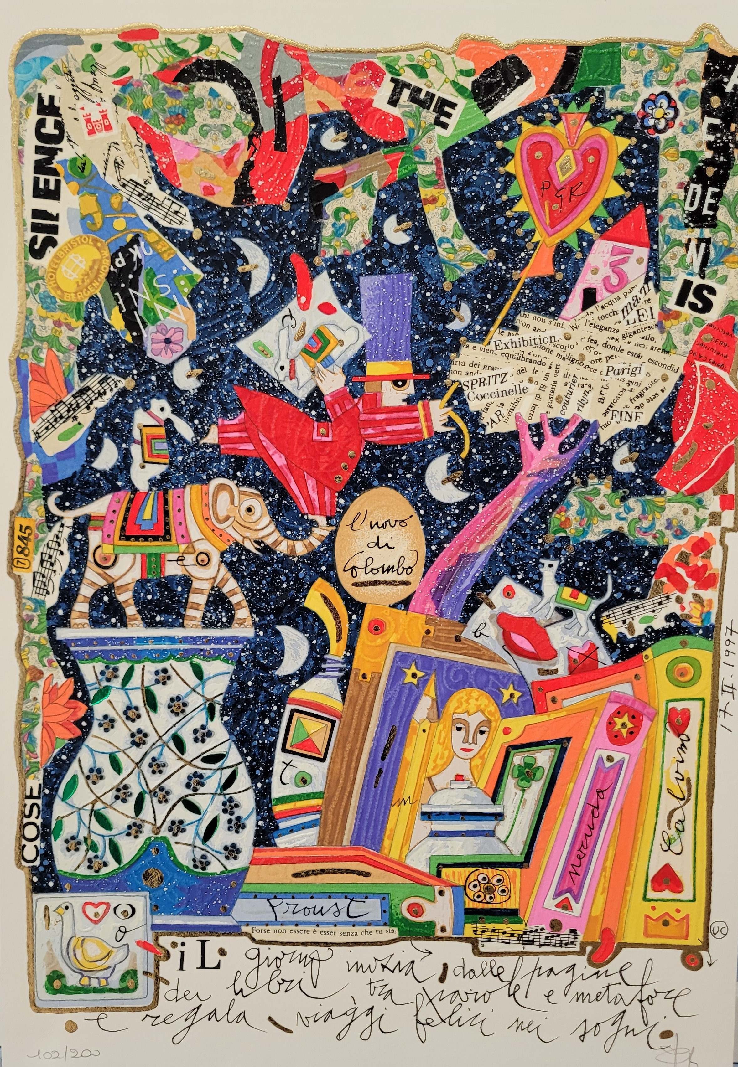 Francesco Musante Serigrafia su fondo nero Il giorno inizia dalle pagine dei libri...