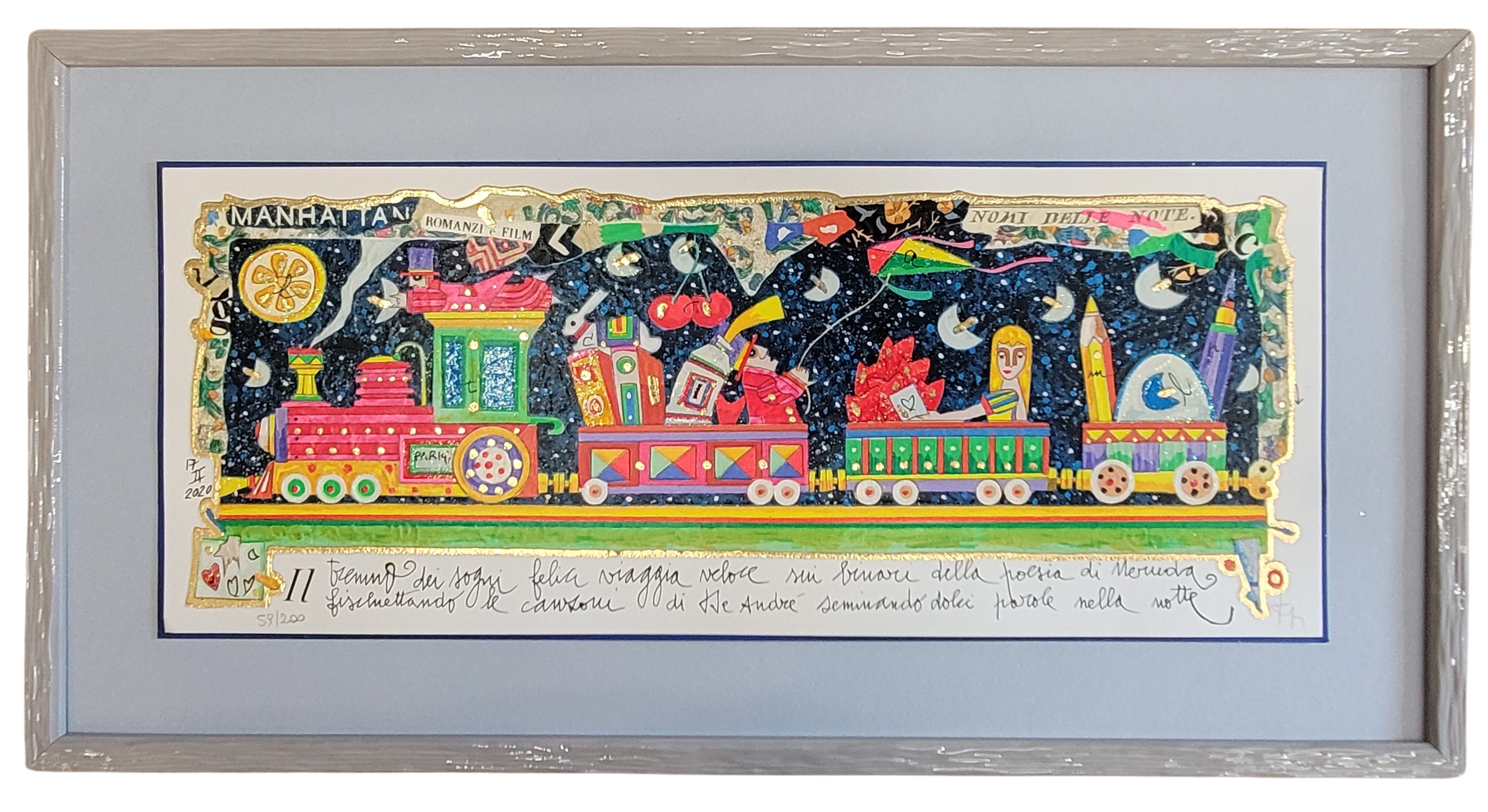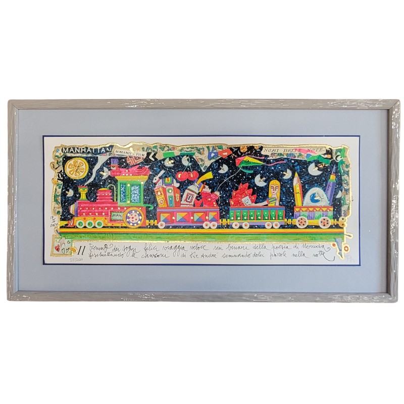 Francesco Musante serigrafia polimatericaIl trenino dei sogni felici viaggia...