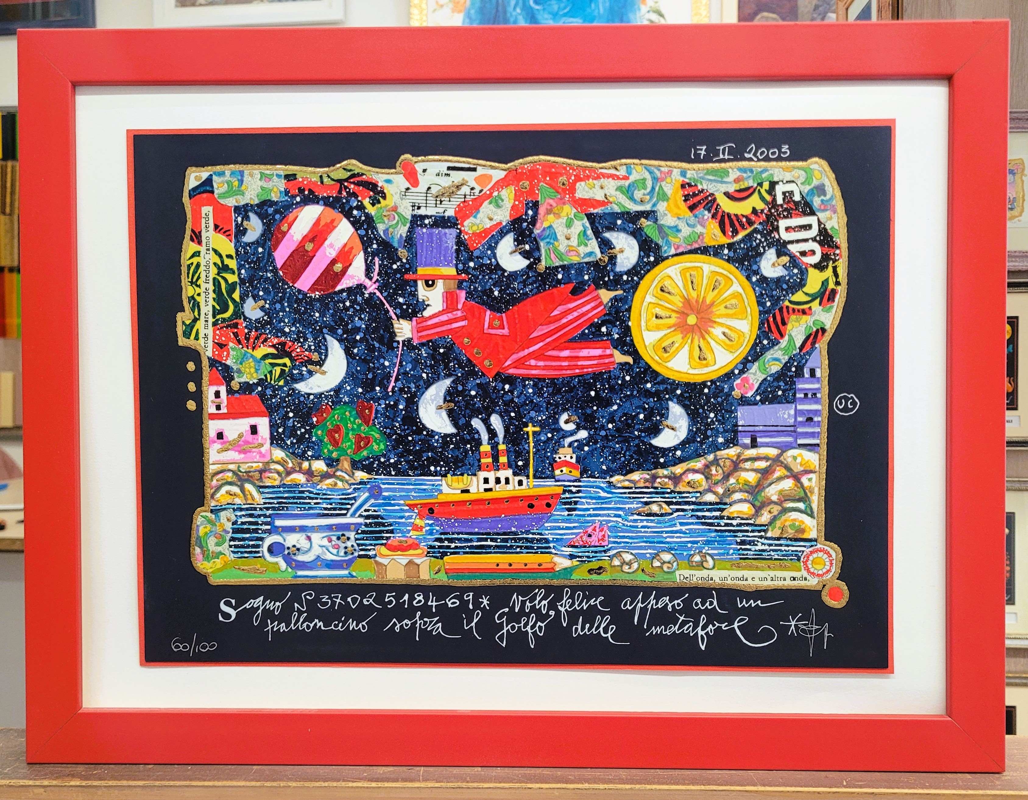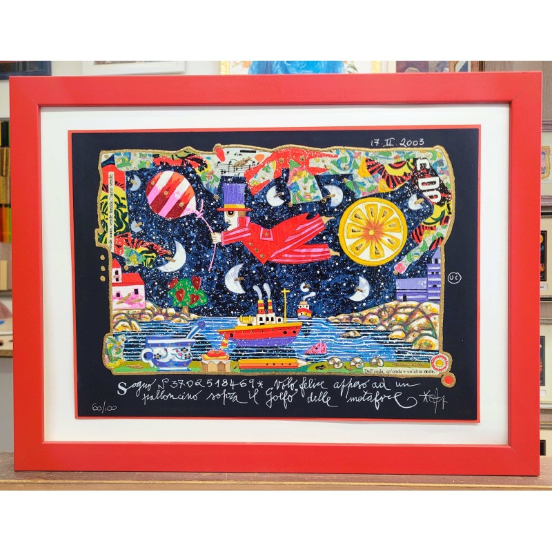 Francesco Musante Serigrafia Volo felice appeso ad un palloncino