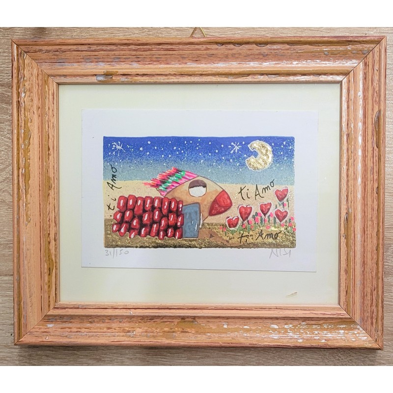 Leo Nisi Serigrafia materica con foglia Ti amo