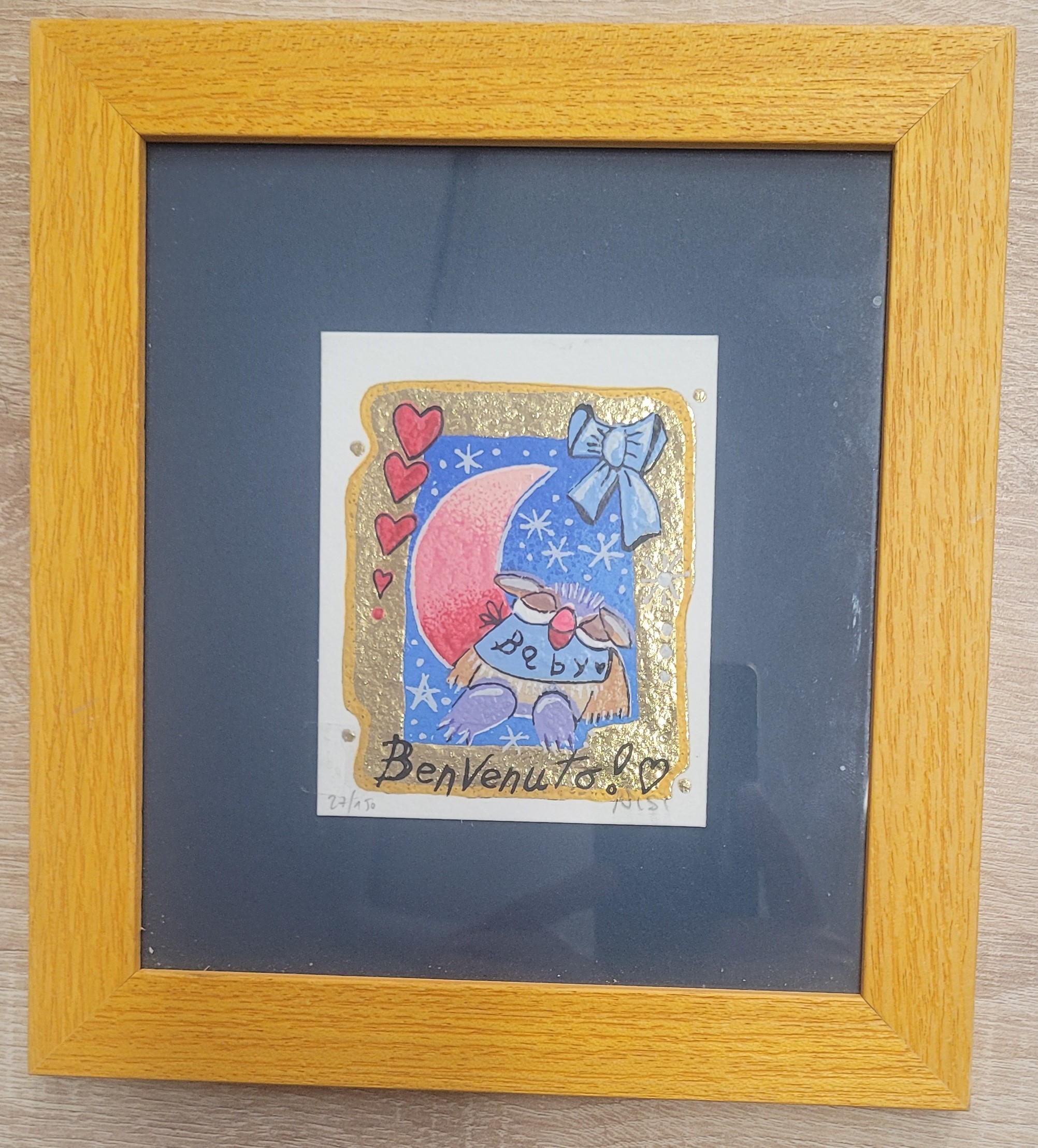 Leo Nisi Serigrafia materica con foglia oro Benvenuto