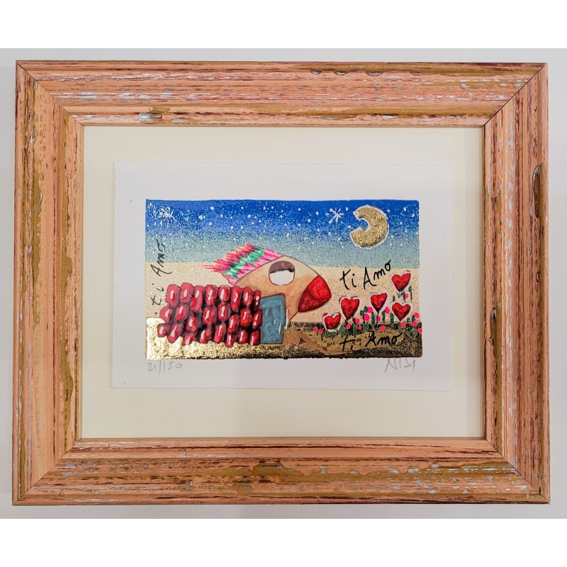 Leo Nisi Serigrafia materica con foglia oro Ti amo