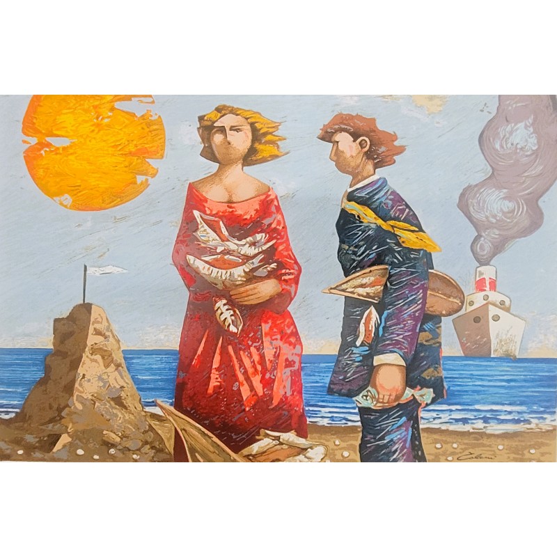 Giampaolo Talani Serigrafia " Cercatori di conchiglie "
